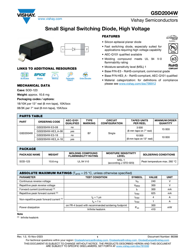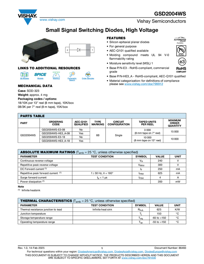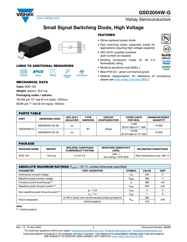 Dual Common Cathode Small Signal High Voltage Switching Diode