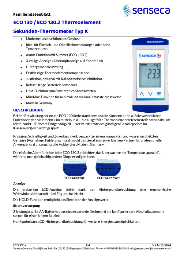 Termometr przemysłowy Senseca ECO 130-GTE130 487050