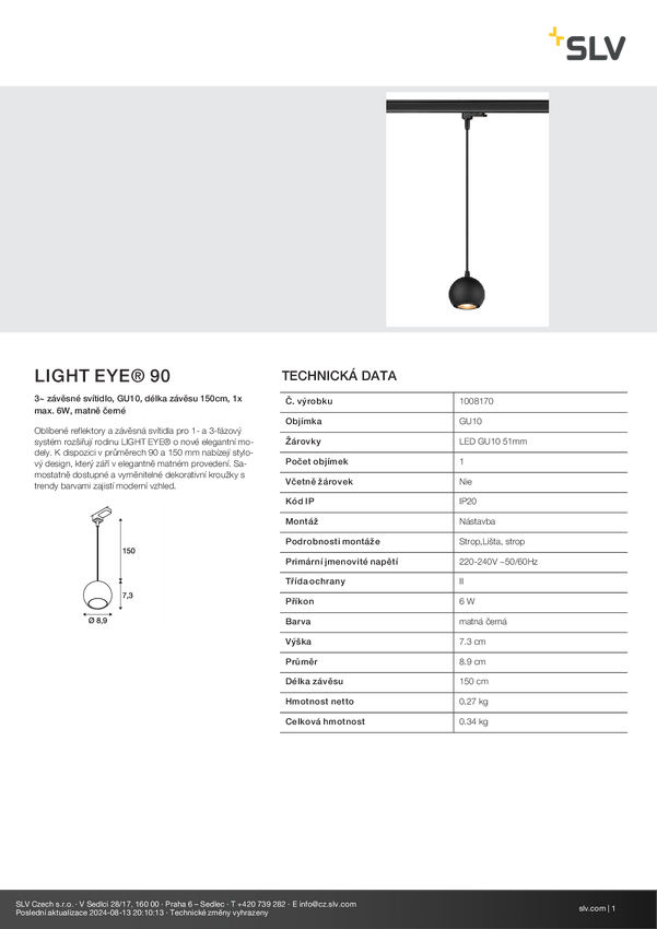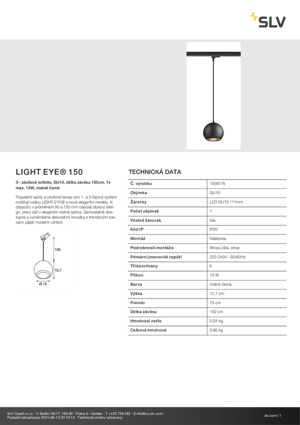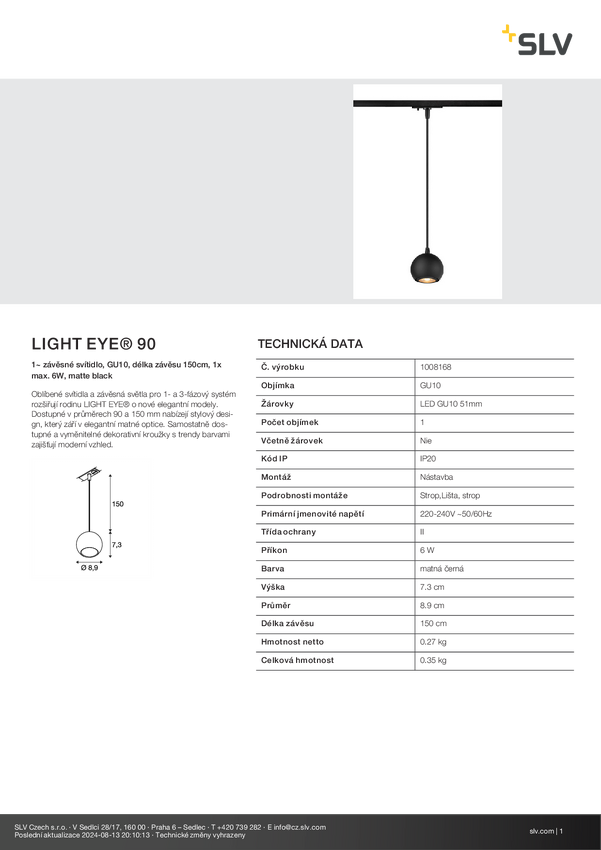Lampa podwieszana LED SLV LIGHT EYE ® 150 GU10 13 W czarny