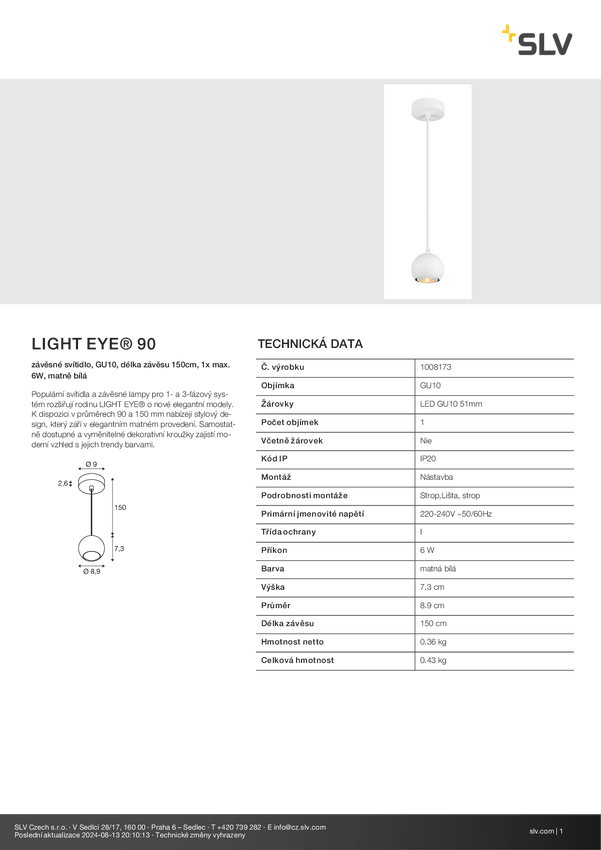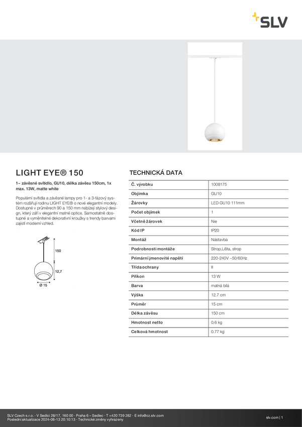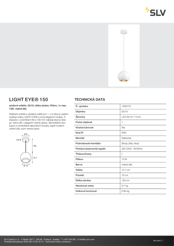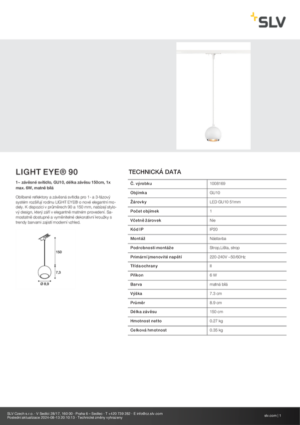 Lampa sufitowa, podwieszana SLV LIGHT EYE ® 150 1008179 GU10 13 W biały