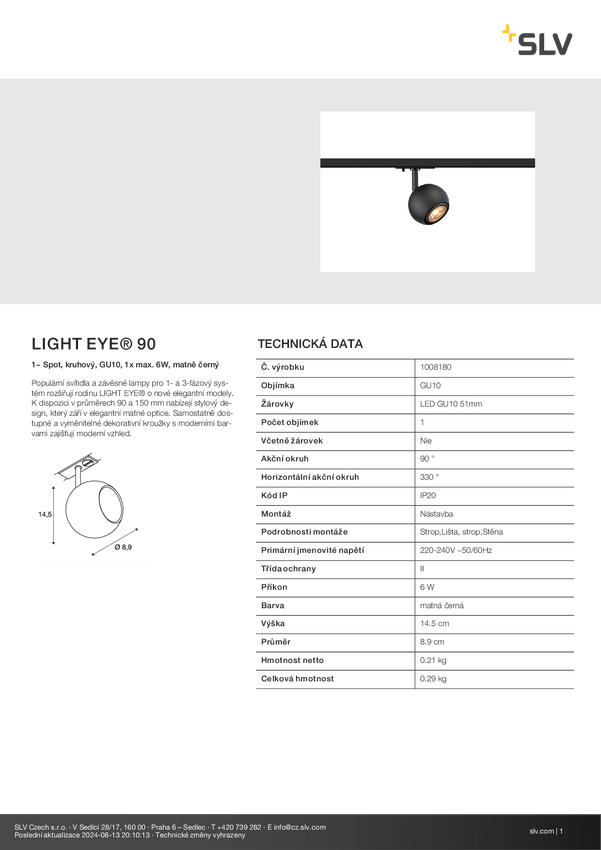 Szyna punktowa SLV LIGHT EYE® 90 1008180 3-fazowy GU10 6 W czarny