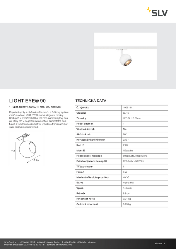 Szyna punktowa SLV LIGHT EYE® 90 1008181 3-fazowy GU10 6 W biały