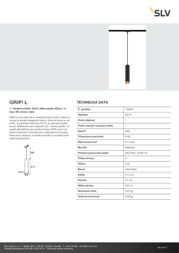SLV GRIP! L Lampa podwieszana LED 1-fazowy GU10 6 W czarny
