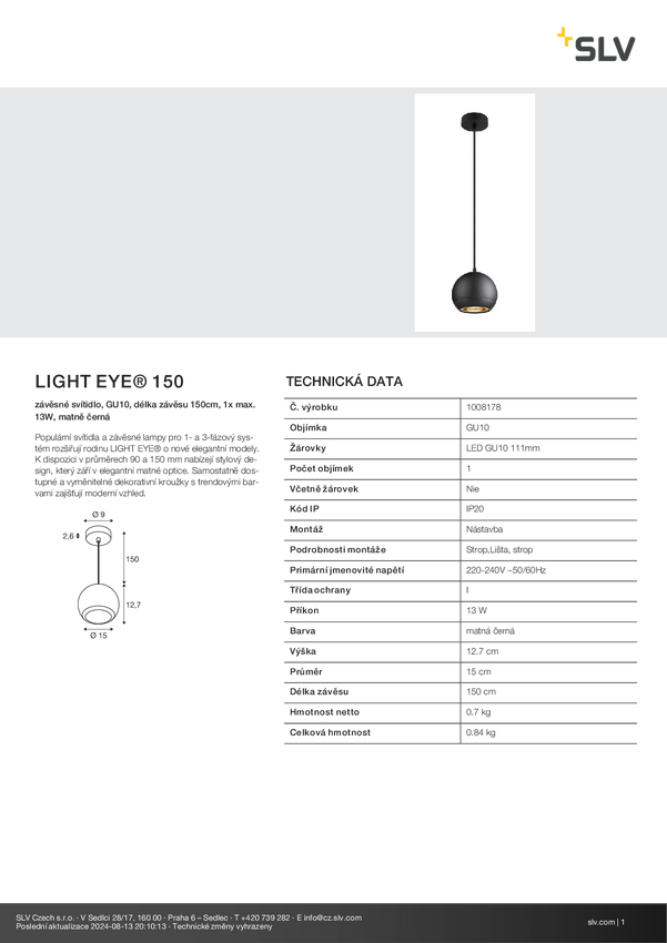 Lampa sufitowa, podwieszana SLV LIGHT EYE ® 150 1008178 GU10 13 W czarny