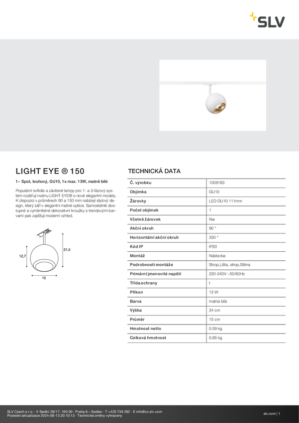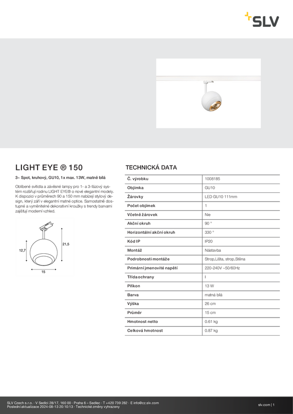 Szyna punktowa SLV LIGHT EYE ® 150 1008183 GU10 13 W biały
