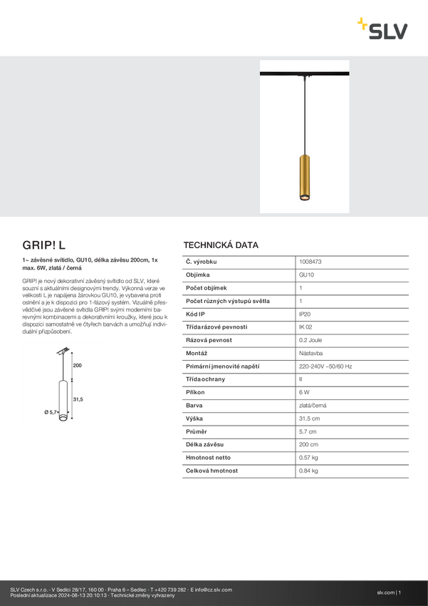SLV GRIP! L Lampa podwieszana LED 1-fazowy GU10 6 W złoty