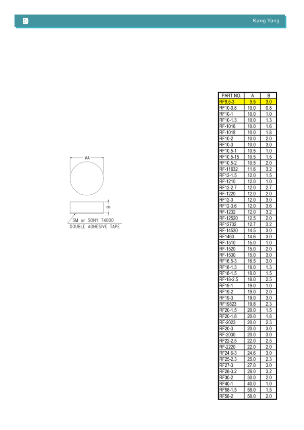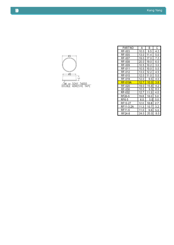 Nóżka gumowa, samoprzylepna, A=Ø9.5mm x B=3.0mm, arkusz 200 szt.
