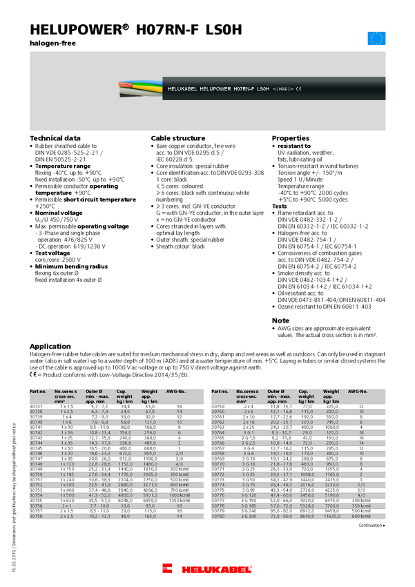 Przewód z gumowym płaszczem Helukabel 30757, 2 x 1.5 mm², Nieosłonięte żyły miedziane, zgodnie z DIN VDE 0295 klasa 5, d