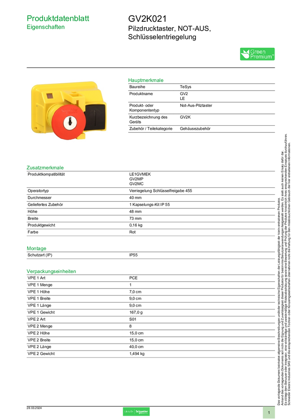 Schneider Electric GV2K021 Przycisk grzybkowy 1 szt.