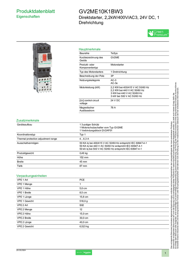 Schneider Electric GV2ME10K1BW3 Starter bezpośredni