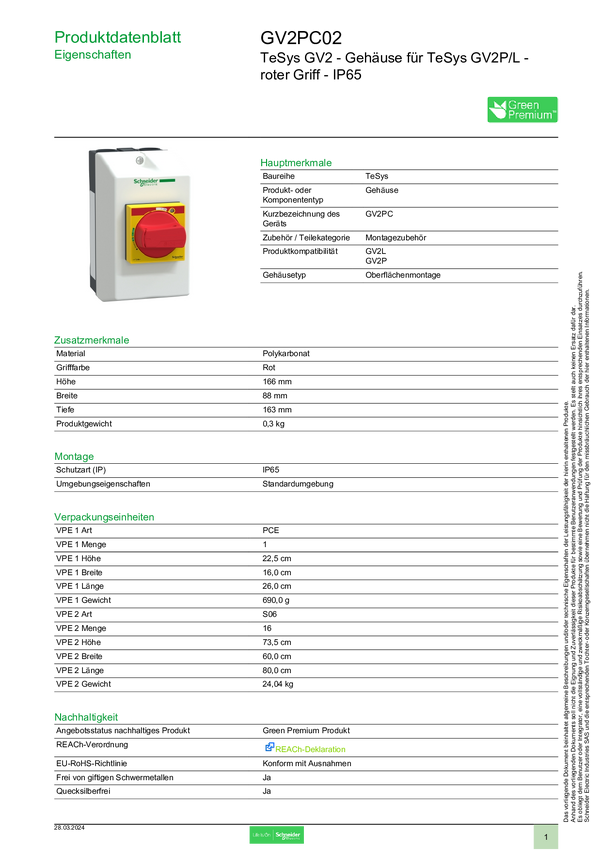 Schneider Electric GV2PC02 Obudowa, 1 szt.