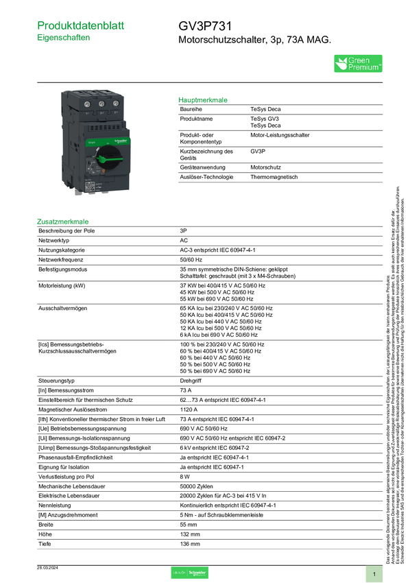 Przekaźnik ochronny silnika Schneider Electric GV3L73 1 szt.