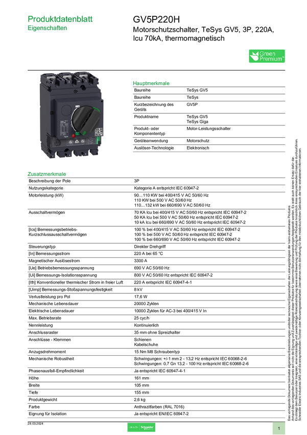 Przekaźnik ochronny silnika Schneider Electric GV5P220H 1 szt.