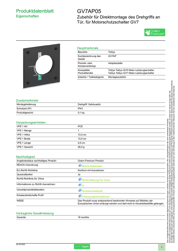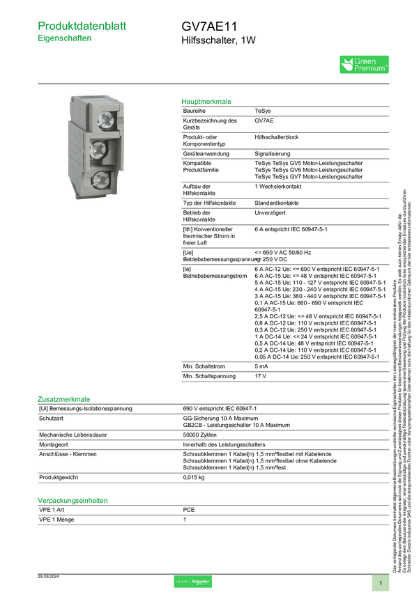 Schneider Electric GV7AP05 Akcesorium do wyłącznika mocy 1 szt.