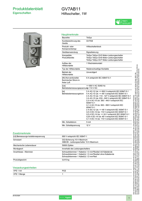 Schneider Electric GV7AB11 Przełącznik pomocniczy 1 szt.