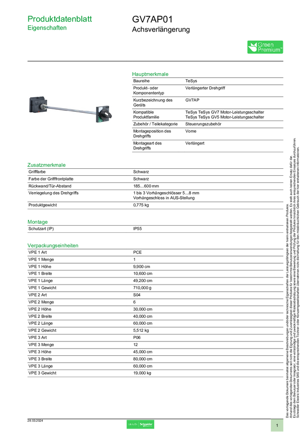 Schneider Electric GV7AP01 Oś przedłużająca 1 szt.