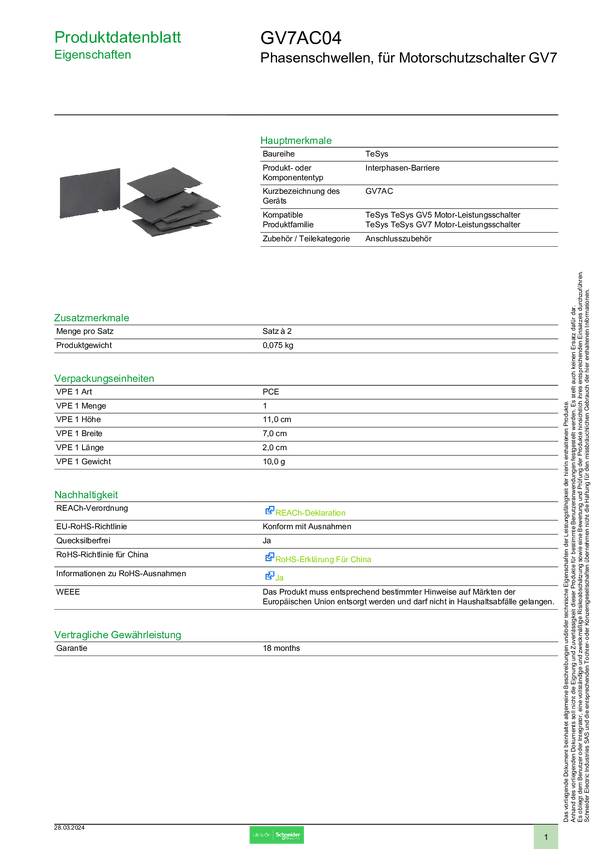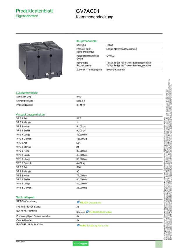 Schneider Electric GV7AC01 Akcesorium do wyłącznika mocy 1 szt.