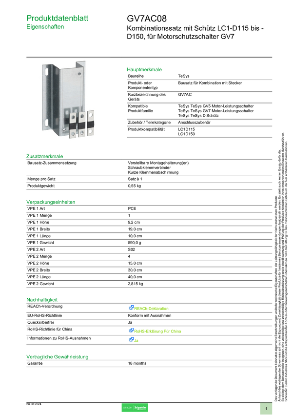 Schneider Electric GV7AC08 Akcesorium do wyłącznika mocy 1 szt.