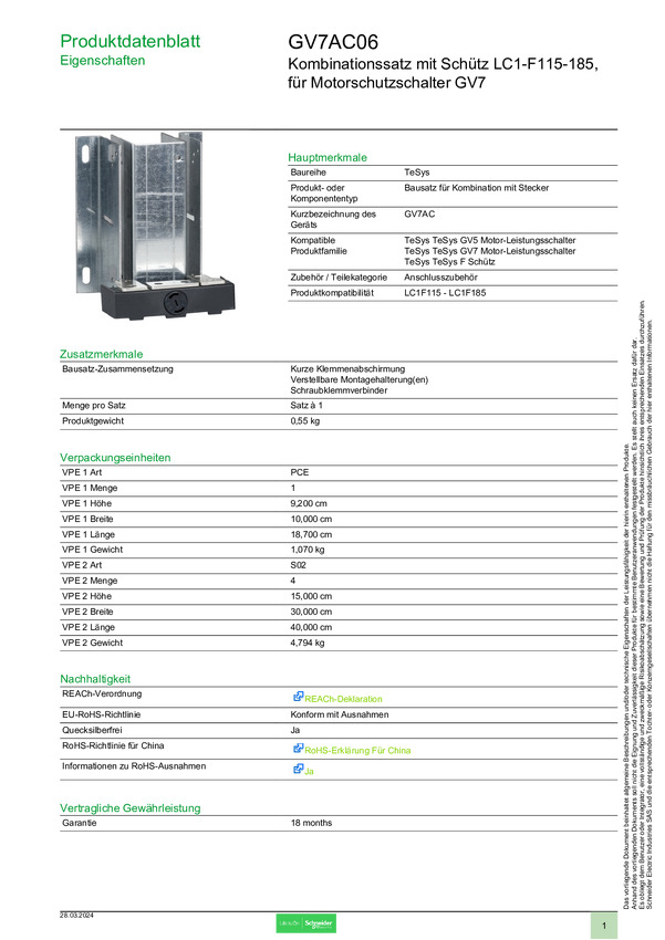Schneider Electric GV7AC06 Akcesorium do wyłącznika mocy 1 szt.