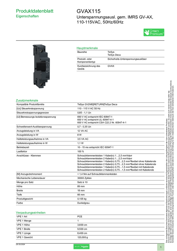 Schneider Electric GVAX115 Akcesorium do wyłącznika mocy 1 szt.