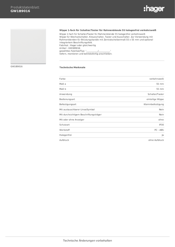 GW1B9016 Akcesorium do listw Tehalit Rocker biały 1 szt.