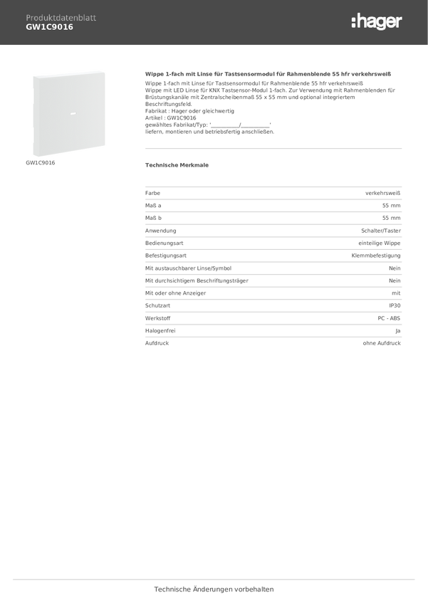 GW1C9016 Akcesorium do listw Tehalit Rocker biały 1 szt.