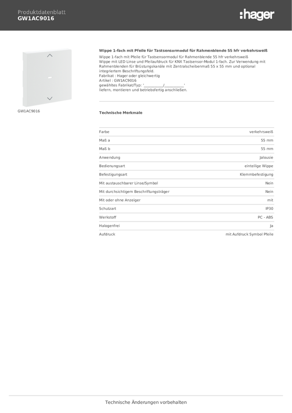GW1AC9016 Akcesorium do listw Tehalit Rocker biały 1 szt.