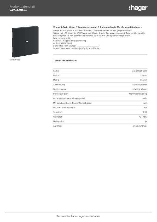 GW1B9011 Akcesorium do listw Tehalit Rocker czarny 1 szt.