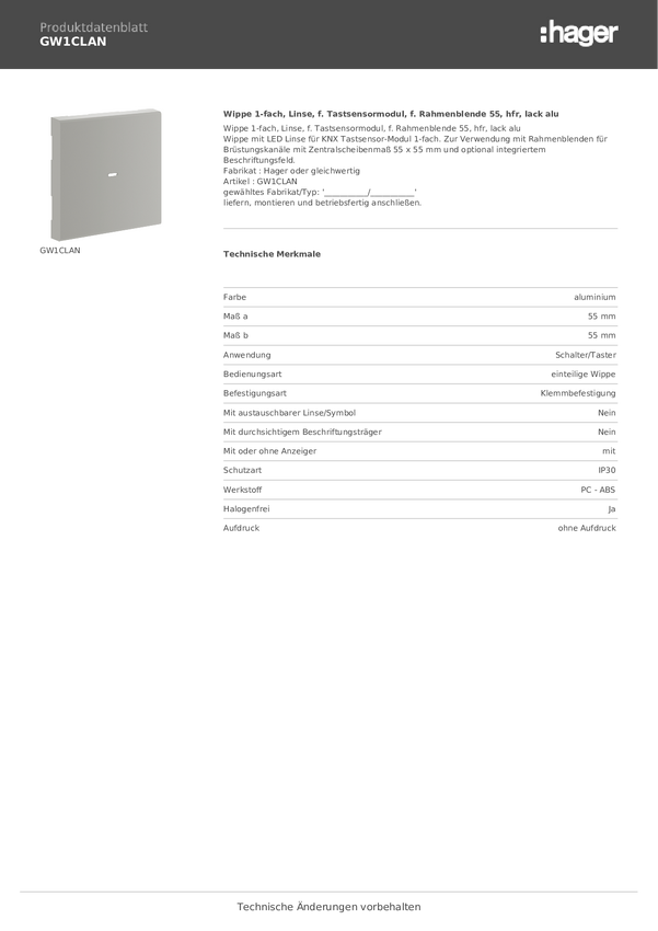 GW1BLAN Akcesorium do listw Tehalit Rocker aluminiowy 1 szt.