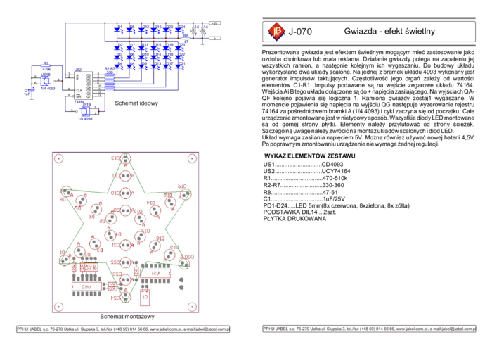 J-070 Gwiazdka - efekt świetlny - zestaw do montażu
