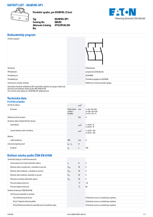 Mostek punktu gwiazdowego Eaton DILM185-XP1 1 szt.