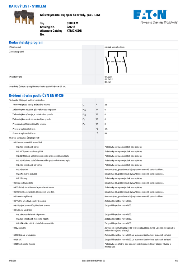 Mostek punktu gwiazdowego Eaton S1DILEM 1 szt.