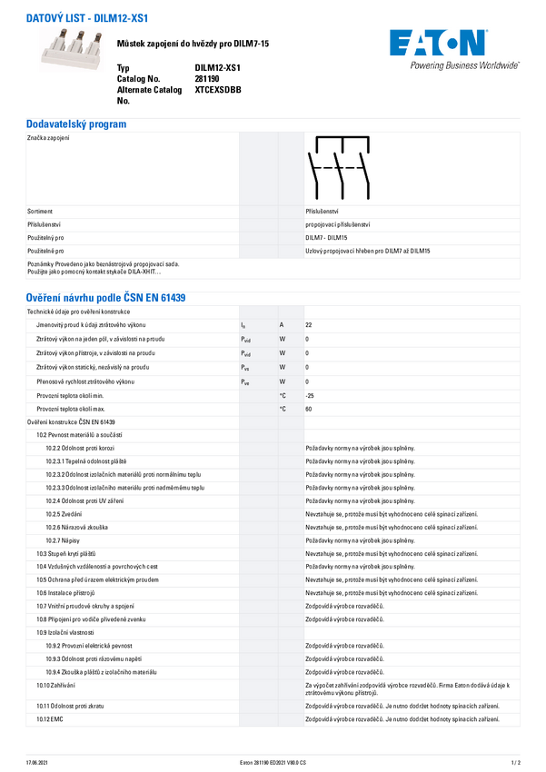 Mostek punktu gwiazdowego Eaton DILM12-XS1 1 szt.