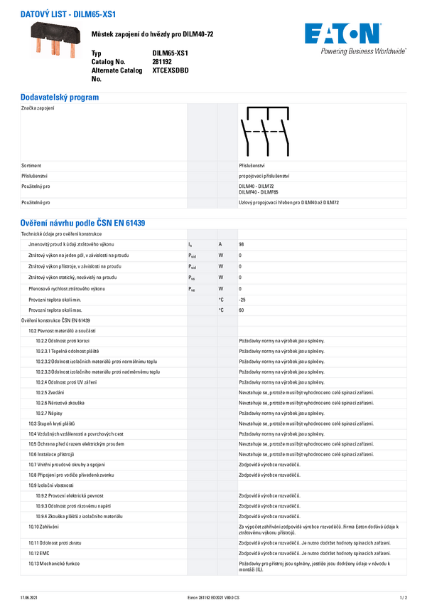 Mostek punktu gwiazdowego Eaton DILM65-XS1 1 szt.