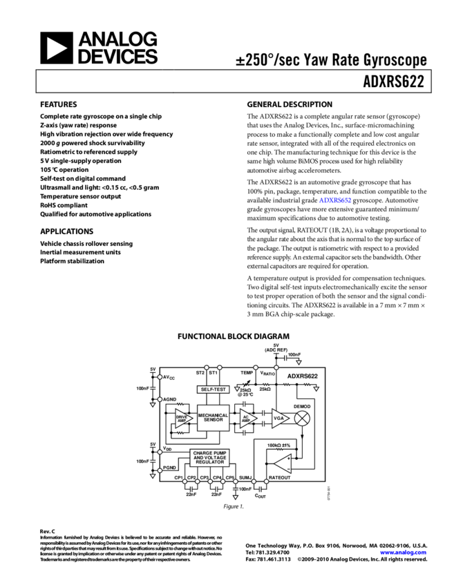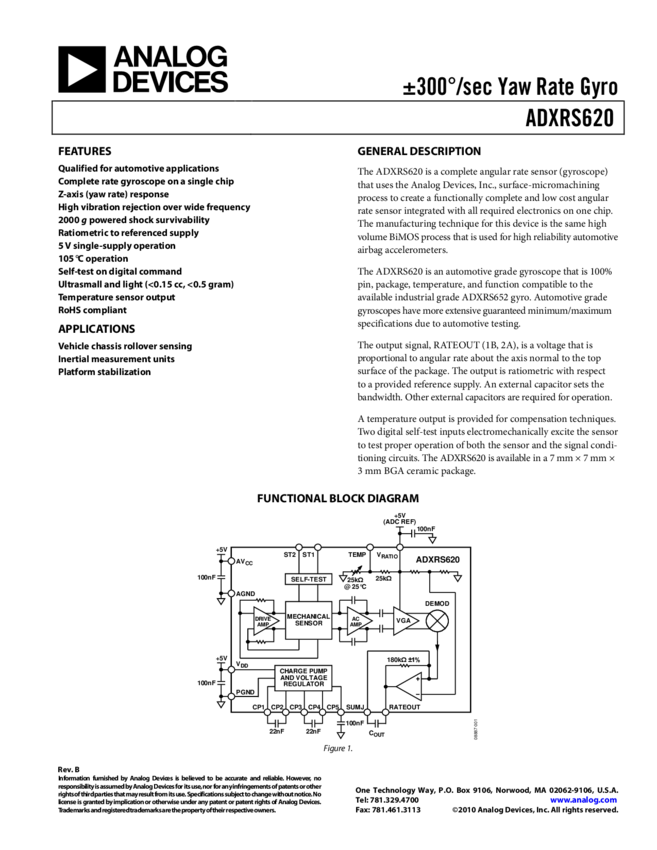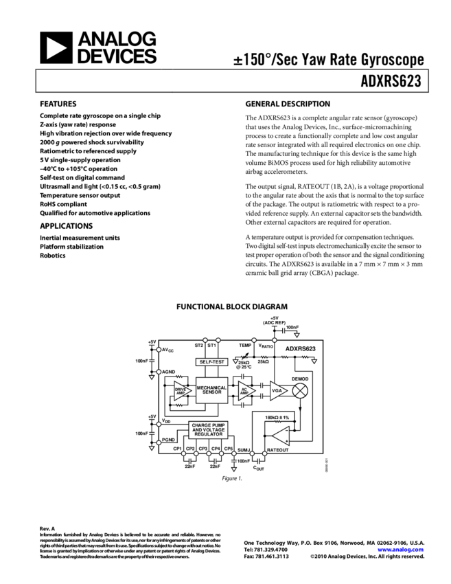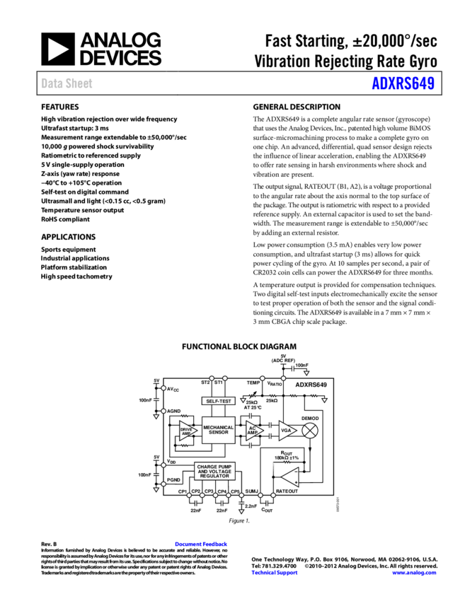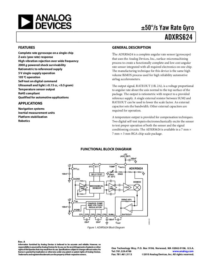 ADXRS646: High Stability, Low Noise Vibration Rejecting Yaw Rate Gyro