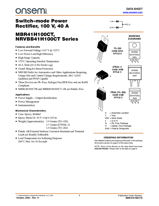 Schottky Barrier Rectifier, H-Series, 100 V, 40 A