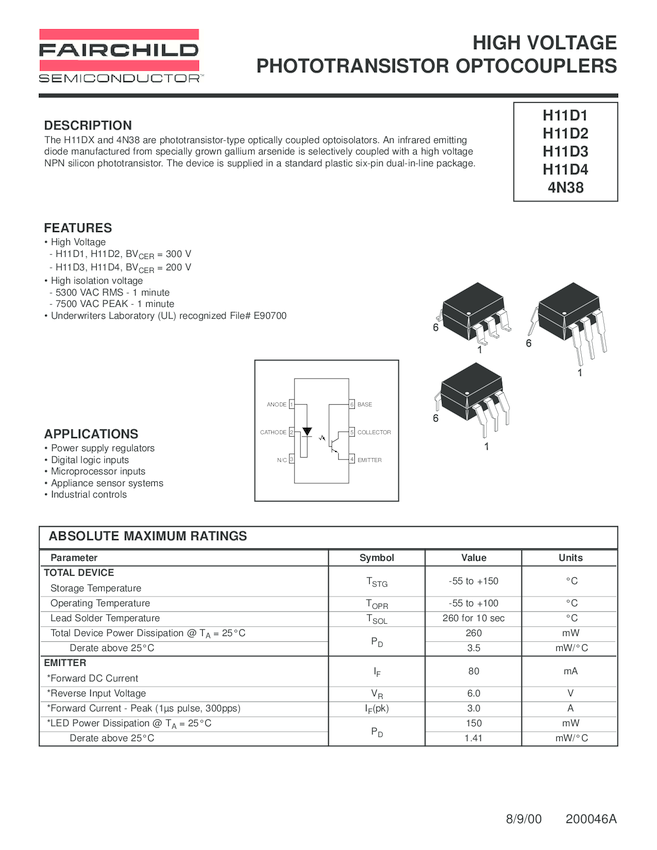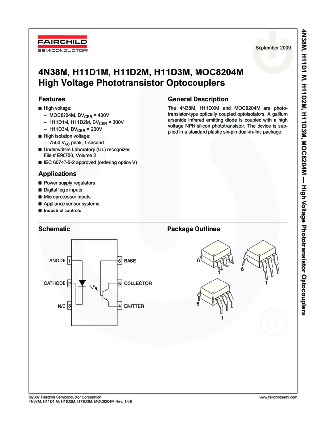 6-pin DIP High Voltage Phototransistor Output Optocoupler
