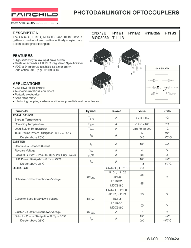 6-Pin DIP High BVceo Phototransistor Output Optocoupler