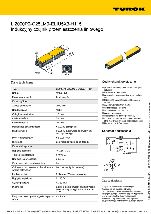 Turck Czujnik położenia liniowego LTE2000M-HT10-LU10-P-0.25-H1151