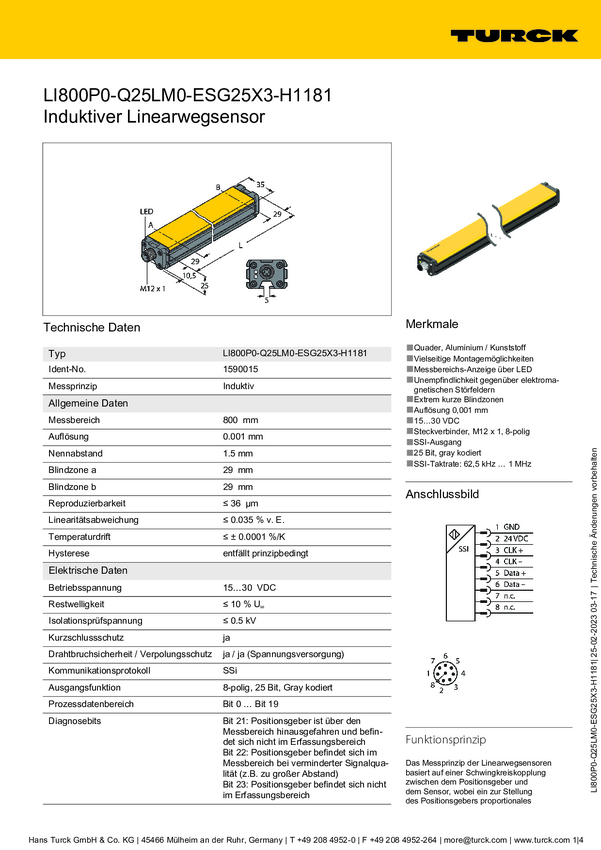 Turck Czujnik położenia liniowego Li800P0-Q25LM0-HESG25X3-H1181