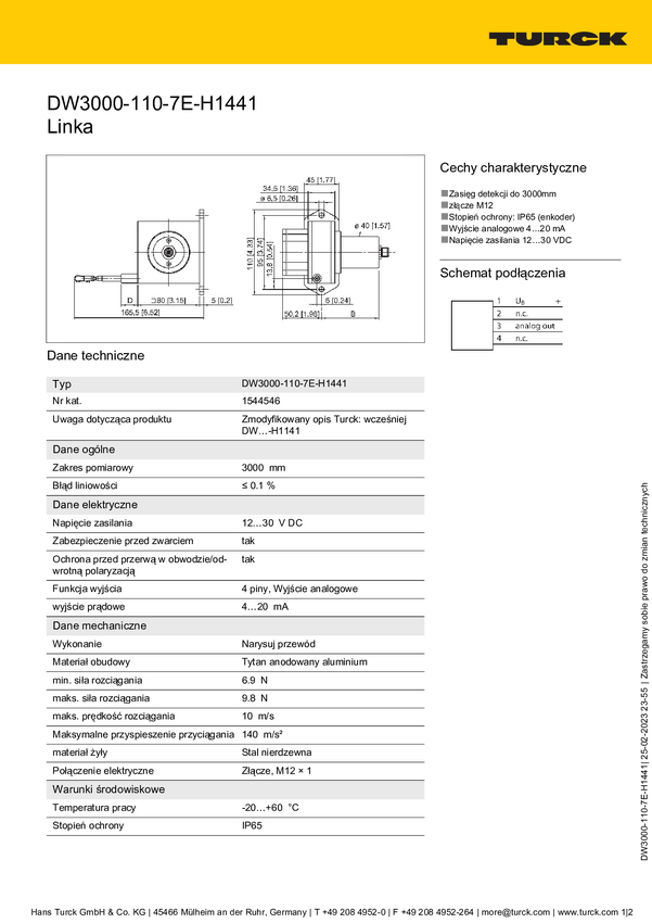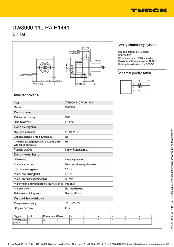 Turck Czujnik przemieszczenia DW3000-110-PA-H1441