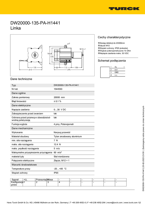 Turck Czujnik przemieszczenia DW20000-135-PA-H1441