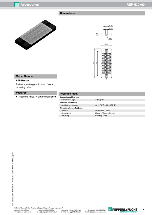 Odbłyśnik Pepperl+Fuchs REF-H30x60 246176 5 szt.
