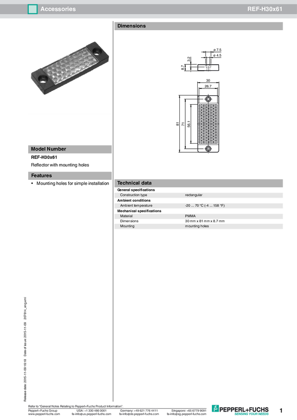 Odbłyśnik Pepperl+Fuchs REF-H30x61 207614 5 szt.
