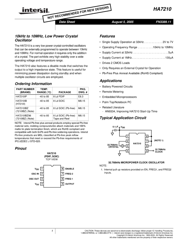 10kHz to 10MHz, Low Power Crystal Oscillator