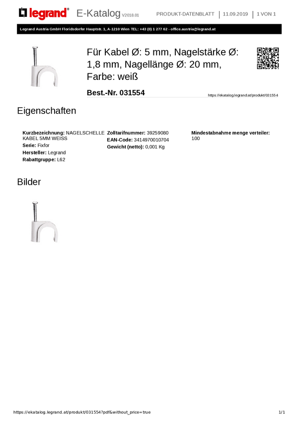 Legrand Legrand 031554 Haczyki z tworzywa sztucznego 031554 Zakres średnicy wiązki 5 mm (max) czysty biały 2000 szt.