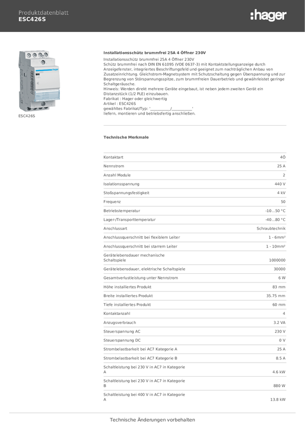 Hager ESC426S Stycznik instalacyjny 230 V 1 szt.