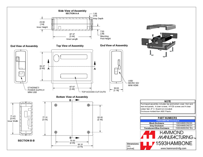 Obudowa do Beaglebone, czarna Hammond Electronics 1593HAMDOGBK