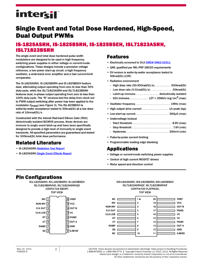Radiation Hardened, High Performance Industry StandardSingle-Ended Current Mode PWM Controller