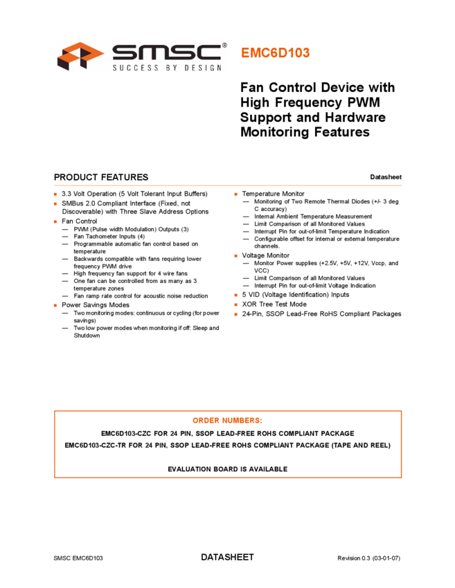 EMC6D103 Fan Control Device with High Frequency PWM Support and Hardware Monito (03/01/2007)